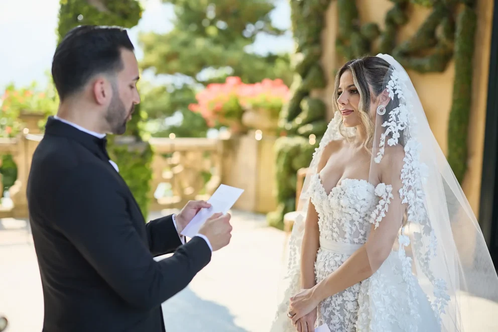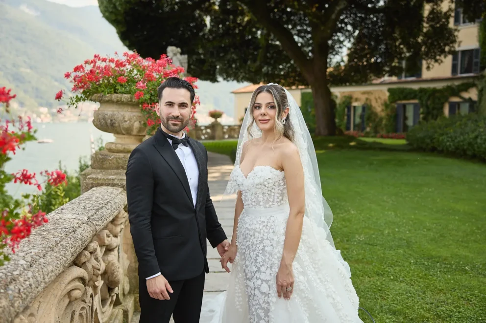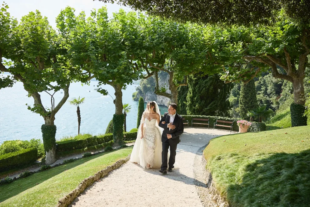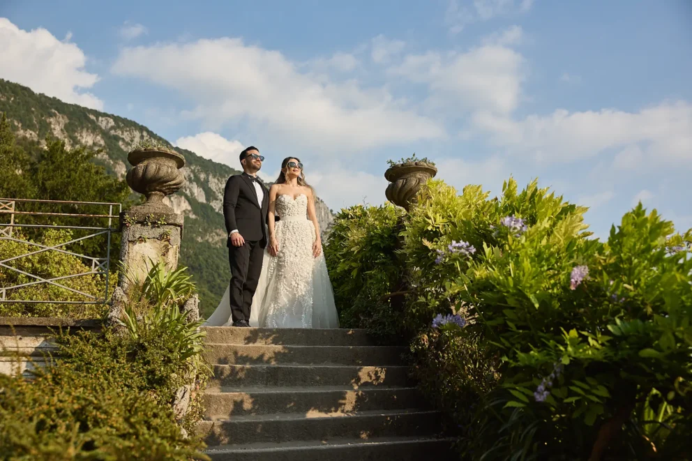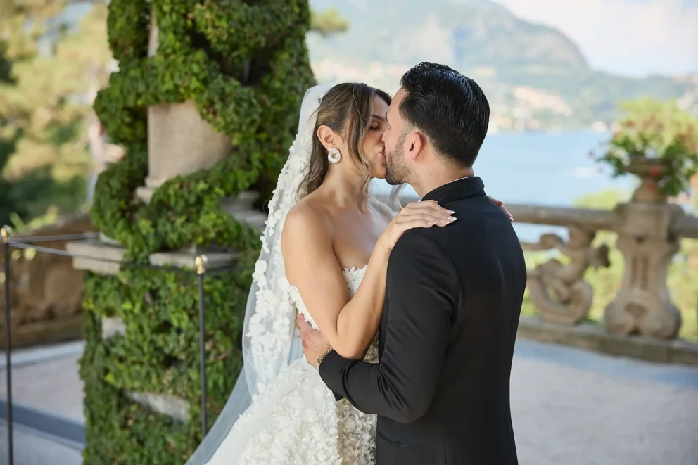 It began with the quiet anticipation at Hotel Musa, the sound of water lapping against the shore just outside. From there, their story unfolded across the lake, moving from the dramatic architecture of Villa del Balbianello to the lush, botanical pathways of Villa Monastero, all connected by a private Riva boat that cut across the water.