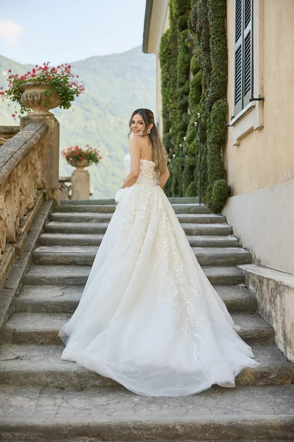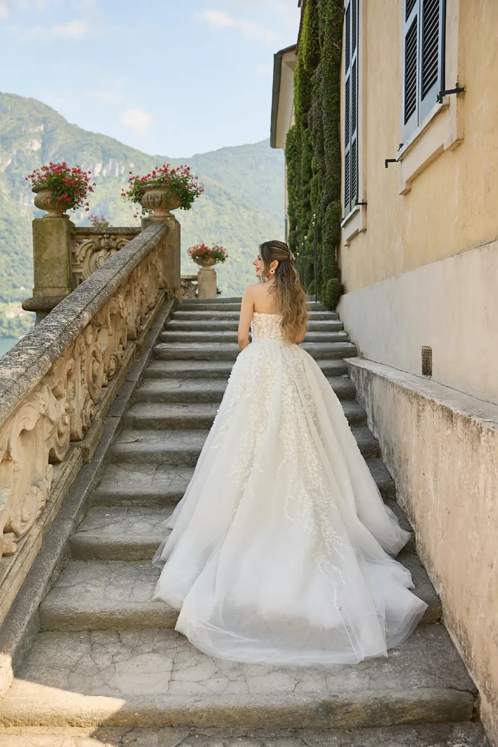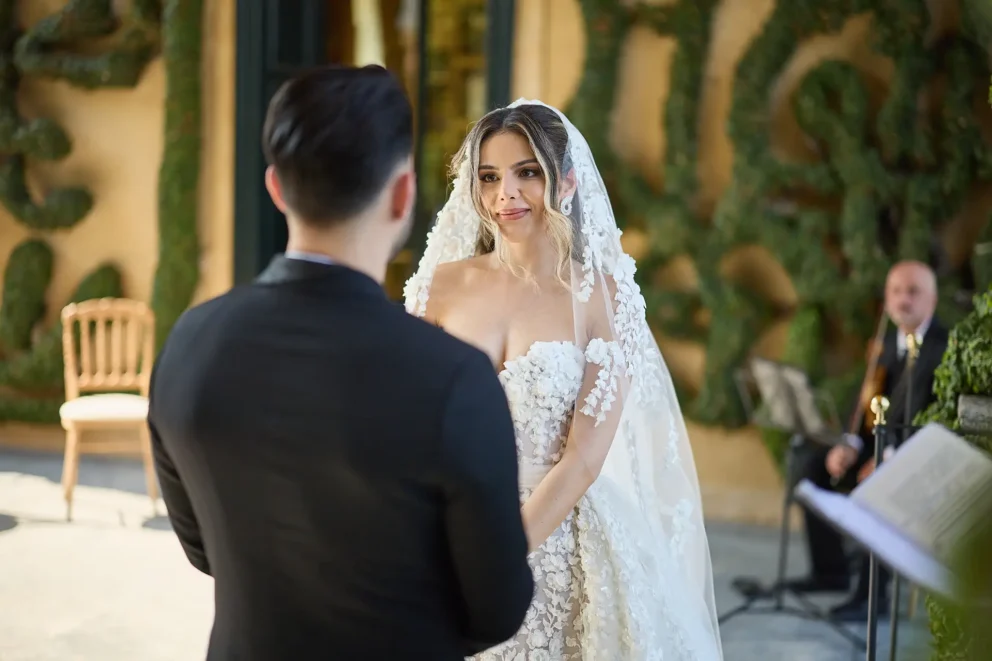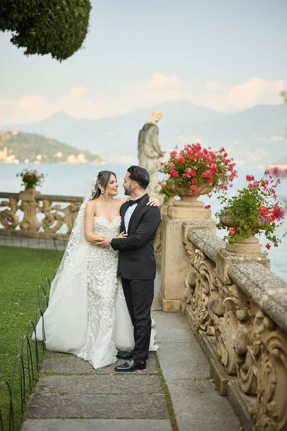 It began with the quiet anticipation at Hotel Musa, the sound of water lapping against the shore just outside. From there, their story unfolded across the lake, moving from the dramatic architecture of Villa del Balbianello to the lush, botanical pathways of Villa Monastero, all connected by a private Riva boat that cut across the water.
