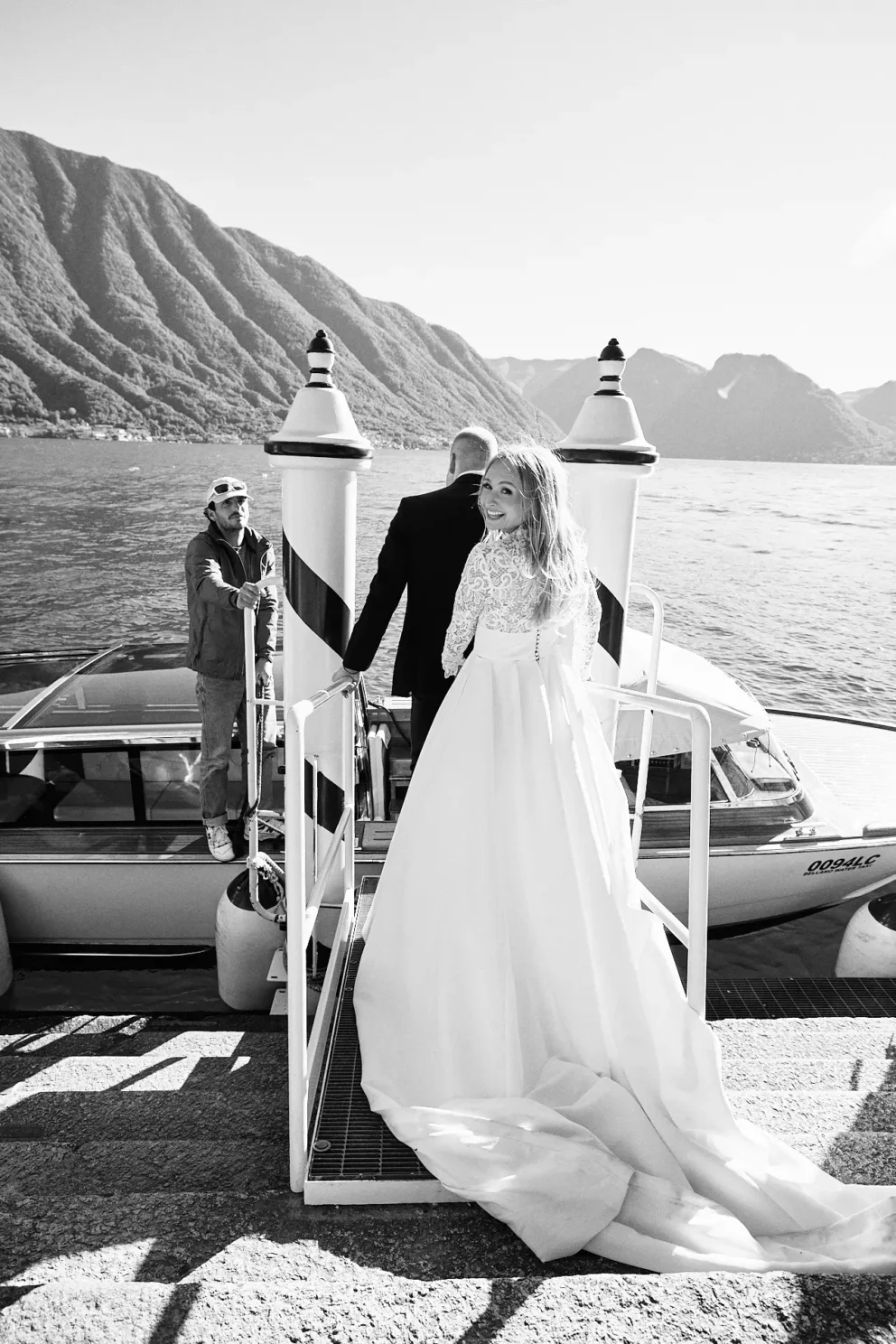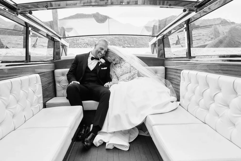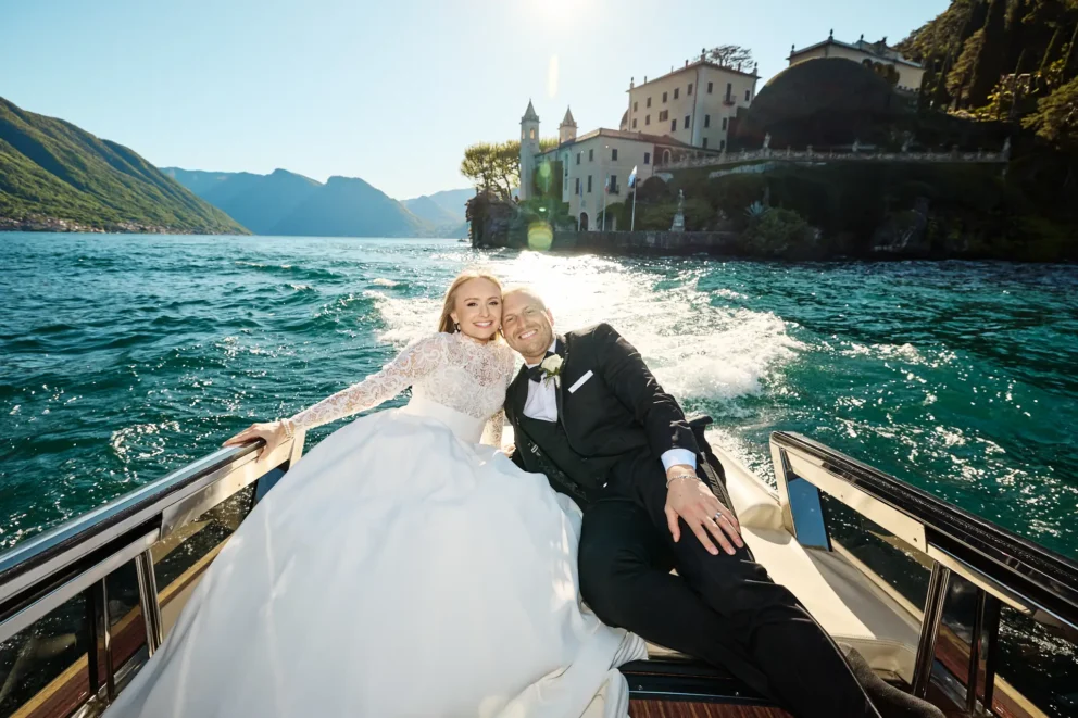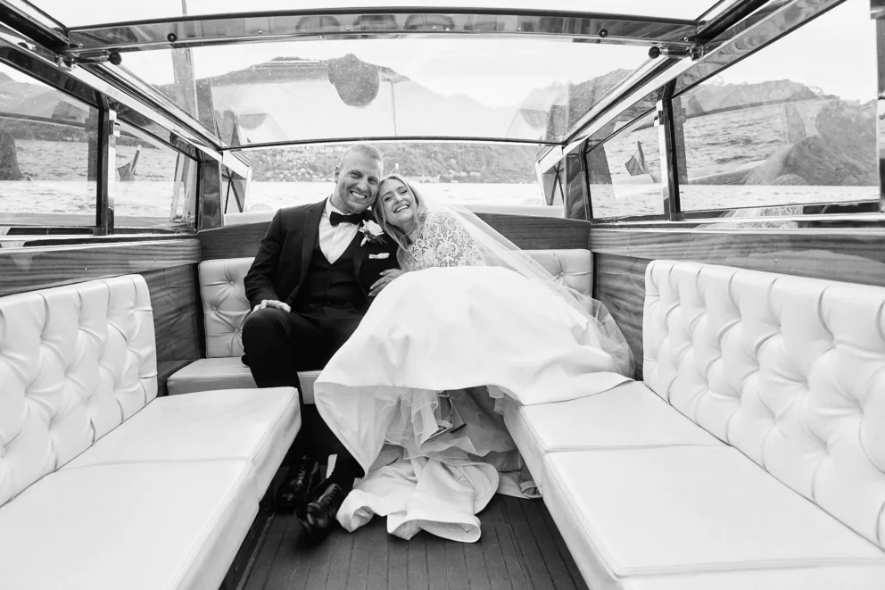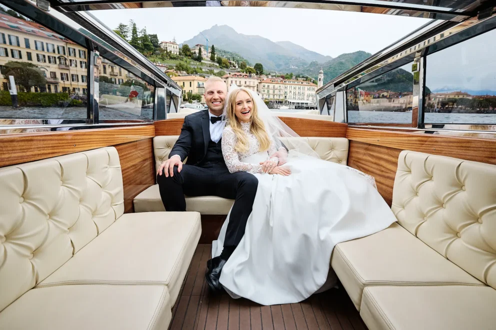 Coordinating a day across three premier locations requires careful planning. But for Juliana and Brendan, the experience felt simple. After a few photos inside the hotel, their private Riva boat arrived. This is the only way to truly see the lake. We partner with a trusted local captain who knows how to navigate the waters to the iconic Villa del Balbianello, arriving at the villa’s private dock just as the light hits its famous arched loggia.