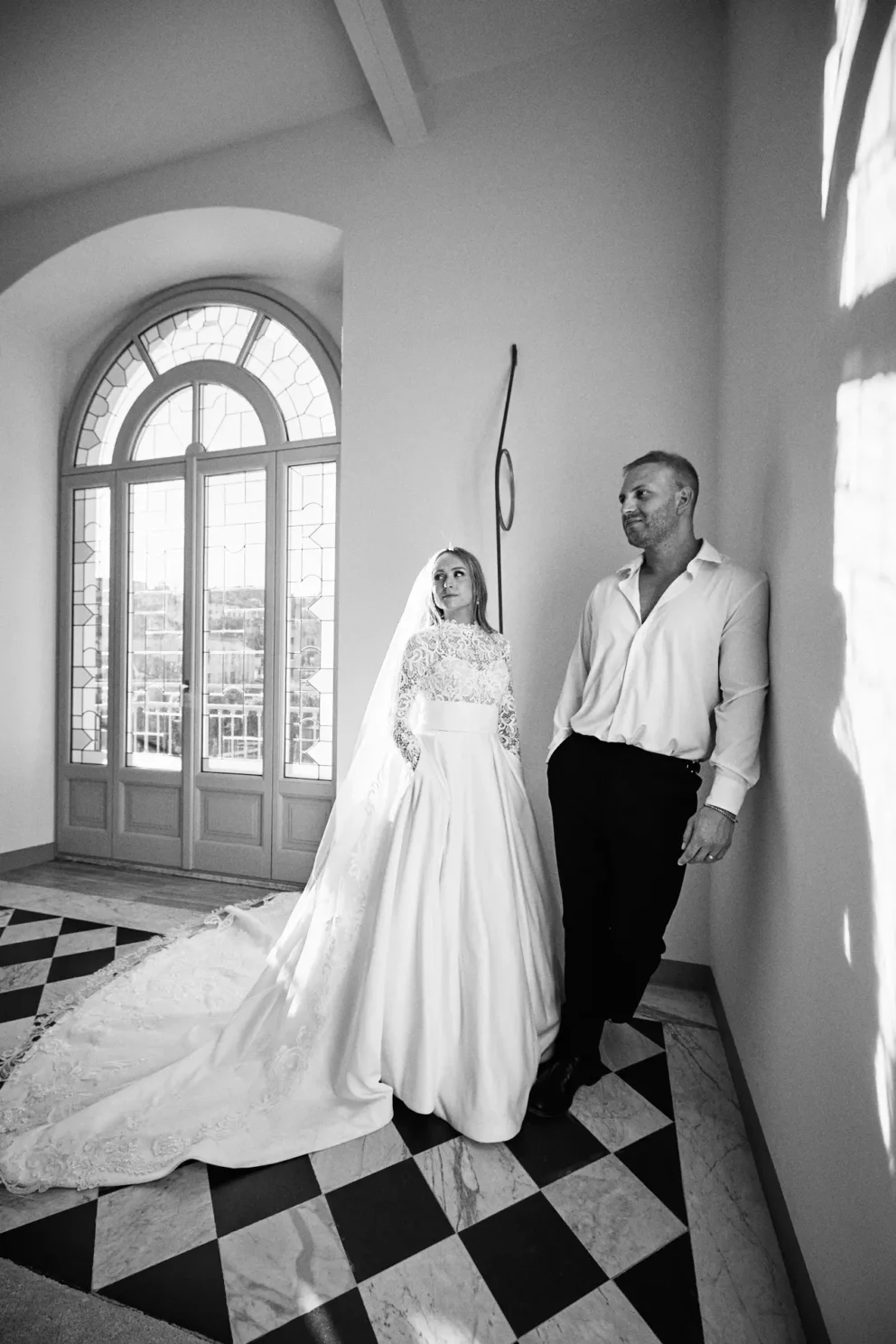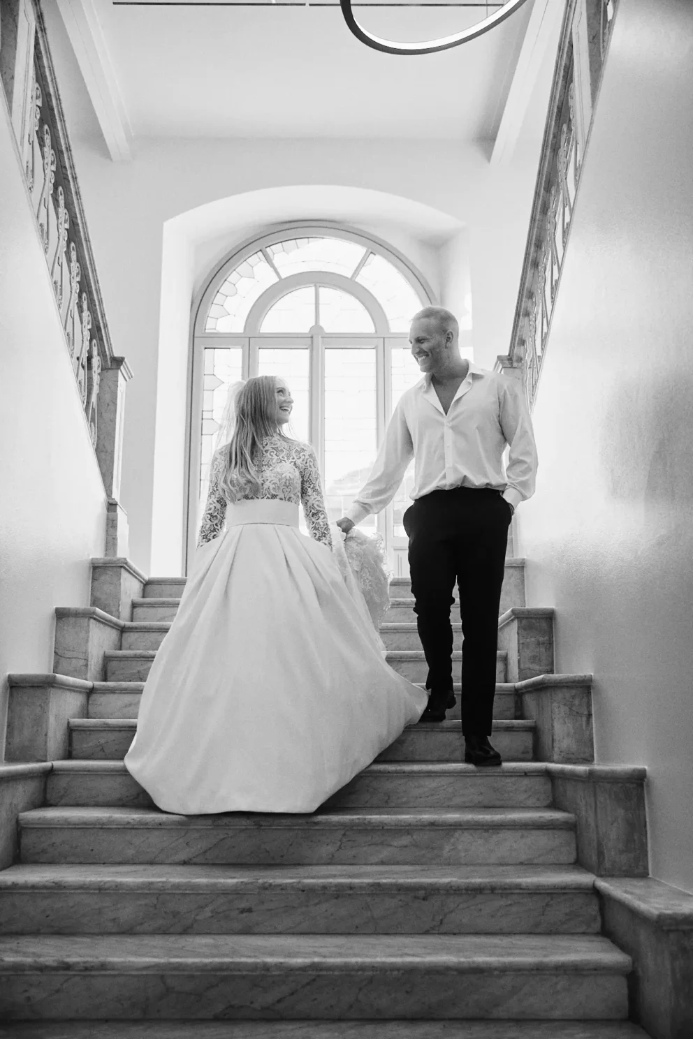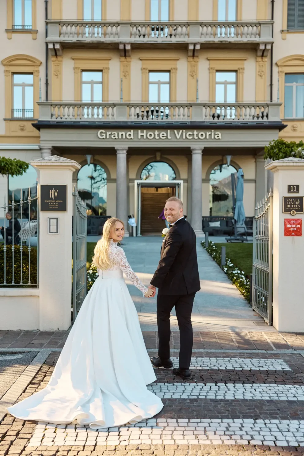 Coordinating a day across three premier locations requires careful planning. But for Juliana and Brendan, the experience felt simple. After a few photos inside the hotel, their private Riva boat arrived. This is the only way to truly see the lake. We partner with a trusted local captain who knows how to navigate the waters to the iconic Villa del Balbianello, arriving at the villa’s private dock just as the light hits its famous arched loggia.