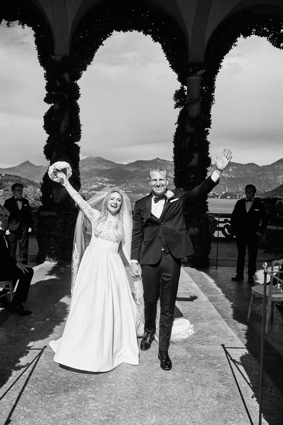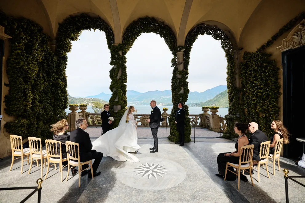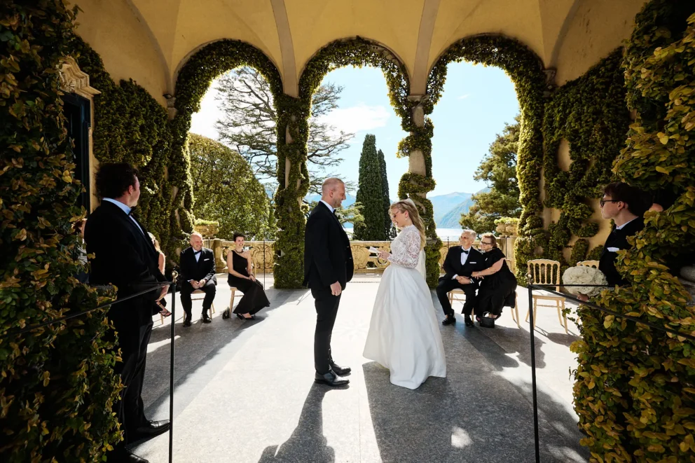 Seeing Juliana and Brendan stand under the loggia at Villa del Balbianello was the moment everything came together. We had talked for months about the wisteria, hoping the timing would be perfect. Seeing it in full, dramatic bloom, framing them as they said their vows, was proof that planning around the seasons creates an atmosphere you simply cannot design any other way. It’s a detail that made their heirloom photos feel alive and completely personal to their story.