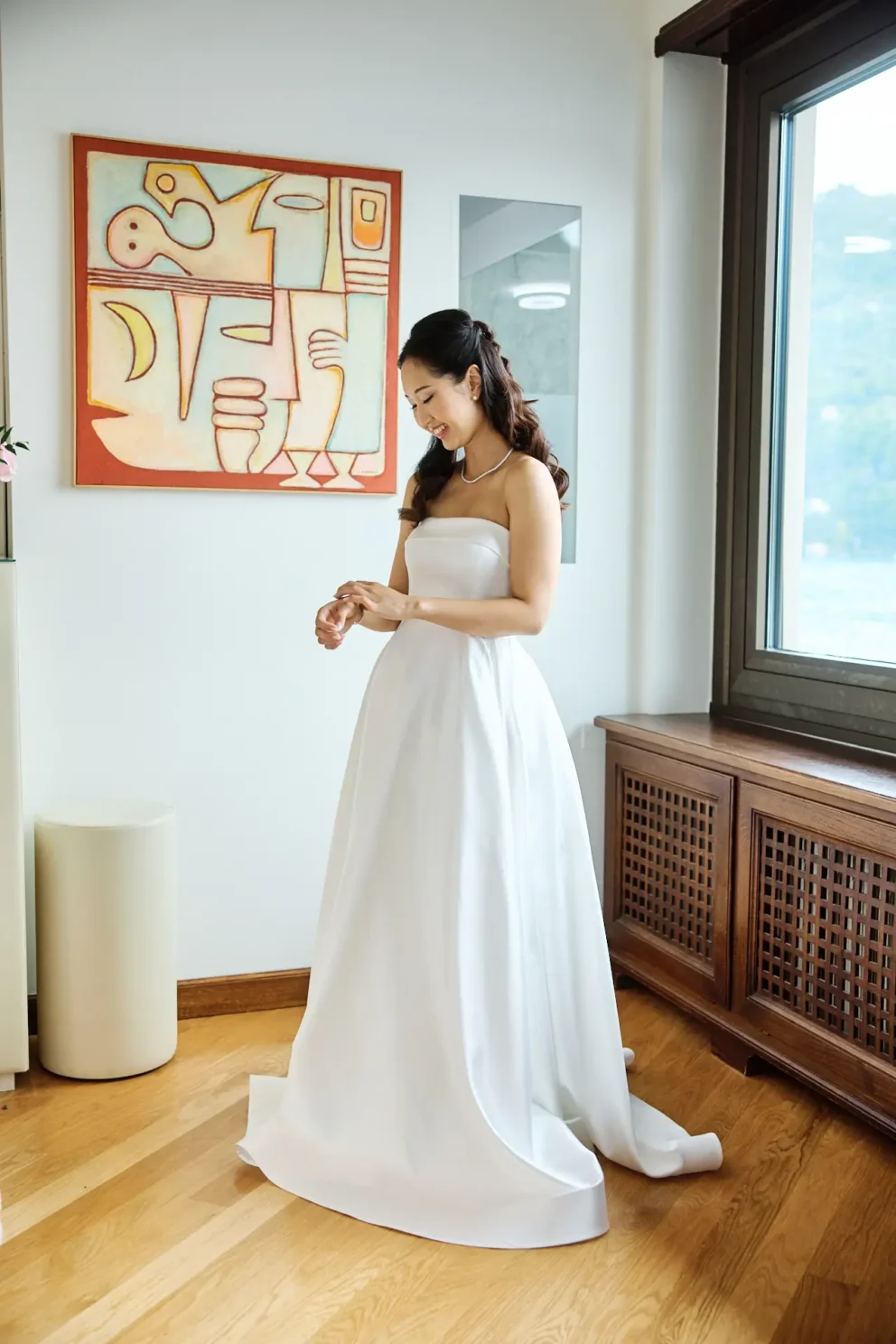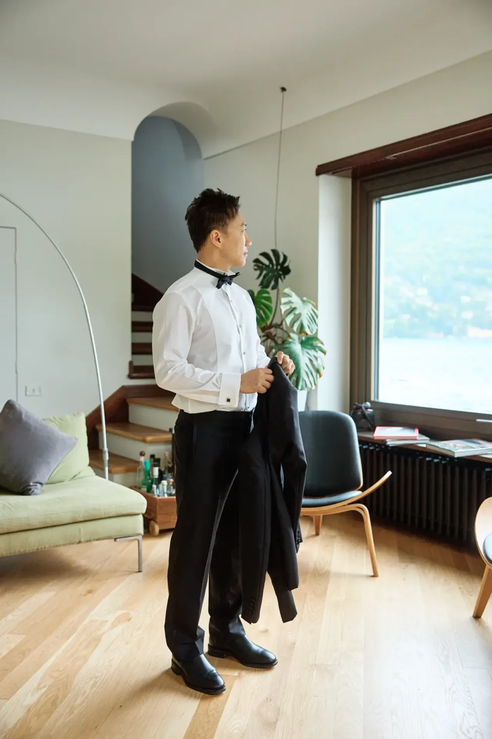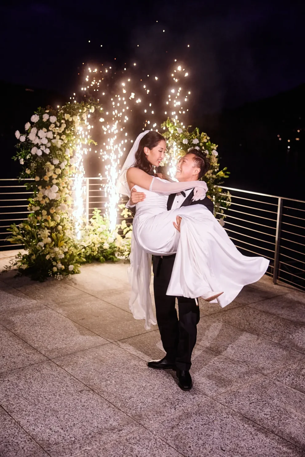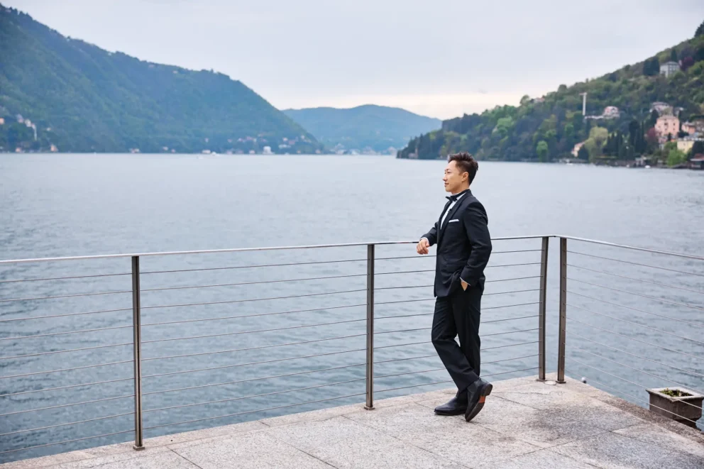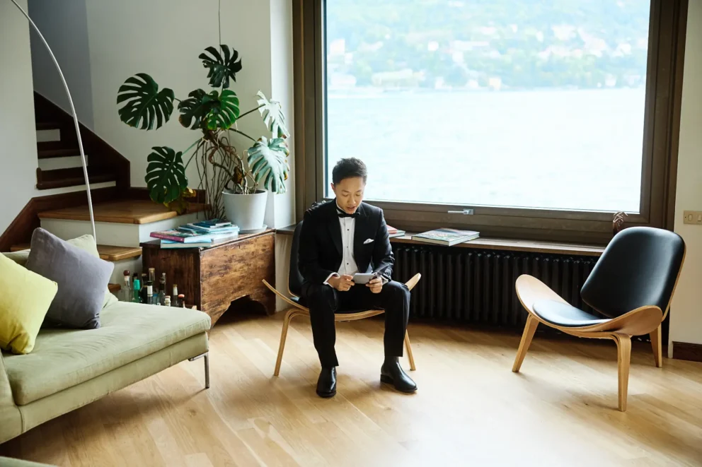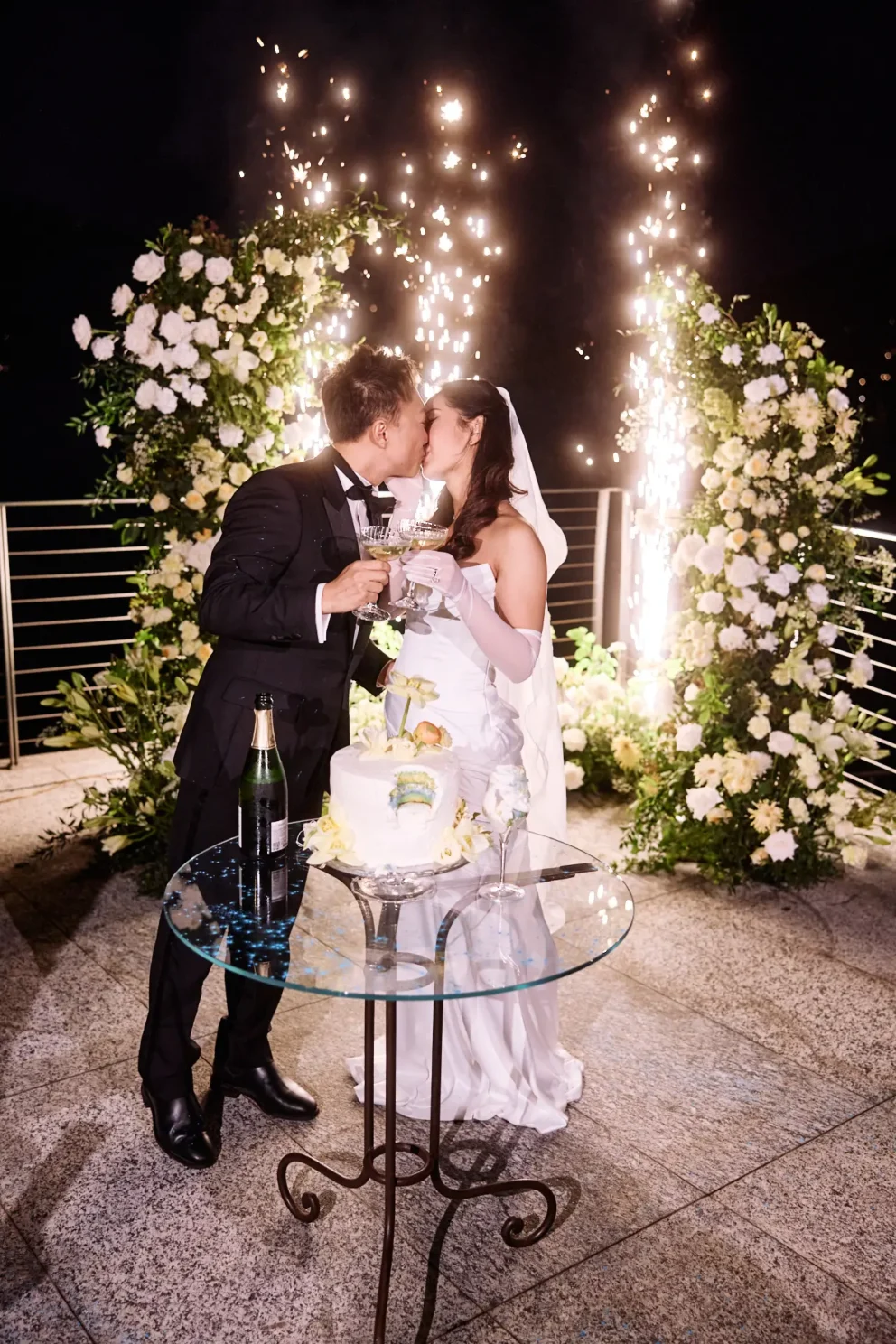 The celebration quickly moved from the villa to the water. We took them out on a classic Riva boat, not just for portraits, but for a true party on the water with their friends. Cruising along the shores of Lake Como, they shared toasts and laughter, creating a memory that was both stylish and genuinely fun.