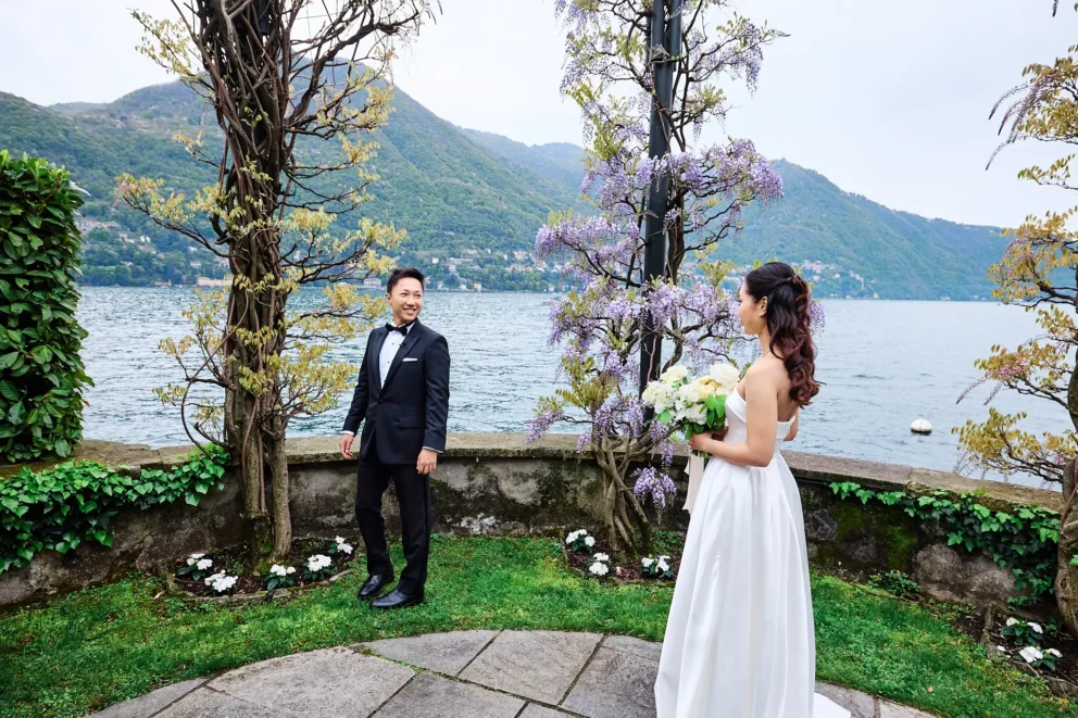 Some weddings are quiet and romantic. This was a party. Stephanie and Michael wanted a fun Lake Como wedding, a day filled with laughter, friends, and one incredible surprise. They chose Villa Noseda, a private villa in Moltrasio perfect for an intimate celebration. The couple had the place to themselves, getting ready before a quiet first look in the gardens. Then, their friends arrived, and the energy changed completely.