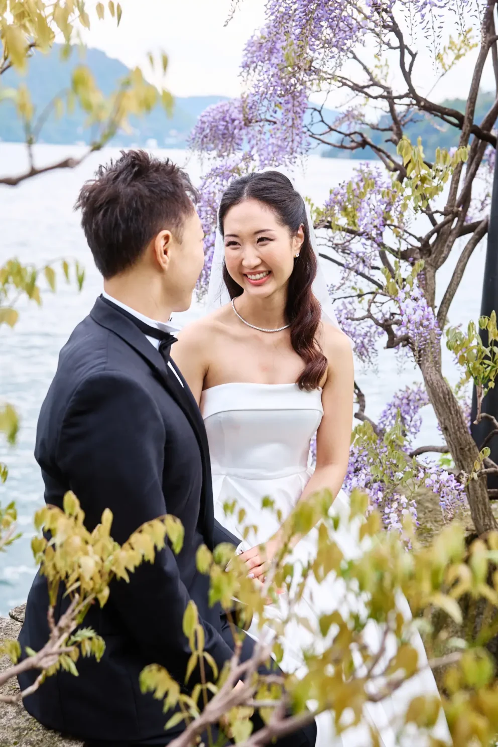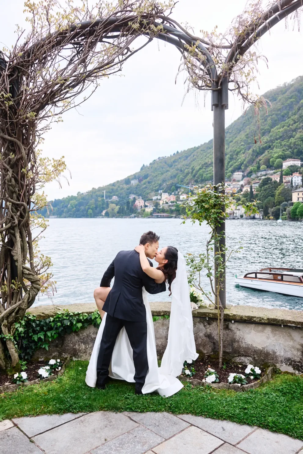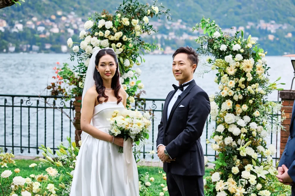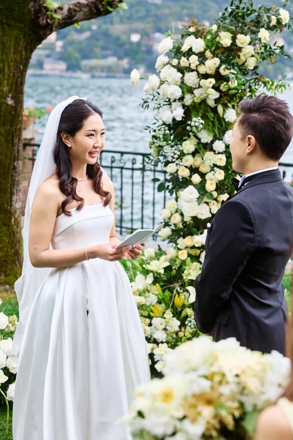 With the lake as their backdrop, they exchanged vows surrounded by their favorite people. The ceremony was followed immediately by an aperitivo, with drinks flowing and everyone celebrating on the lawn.