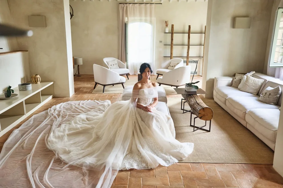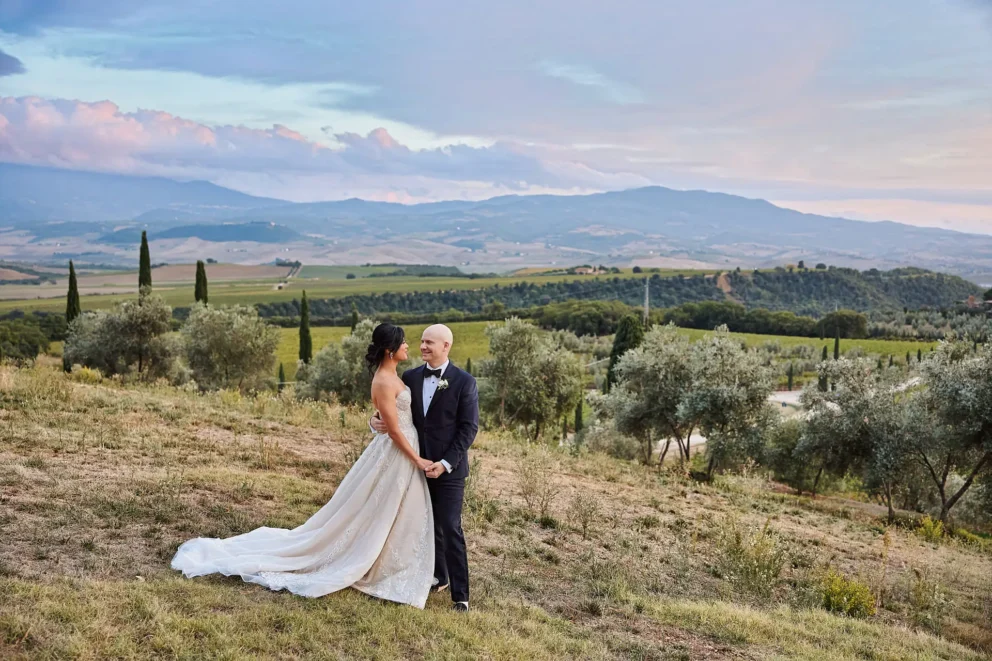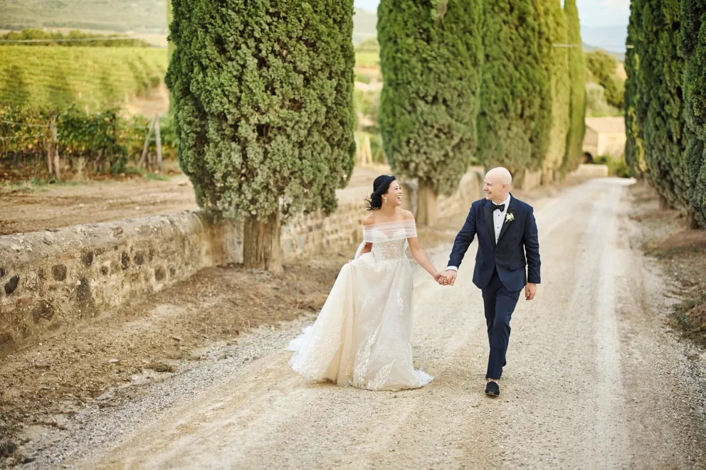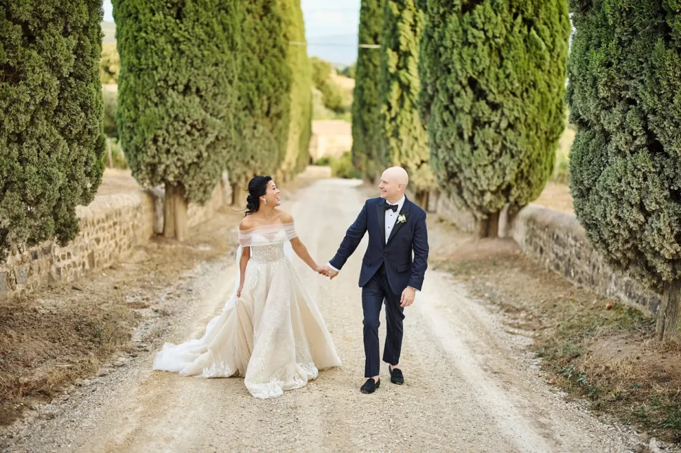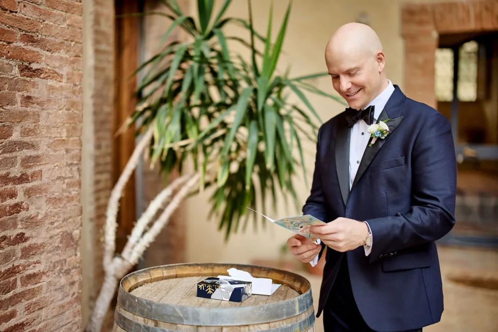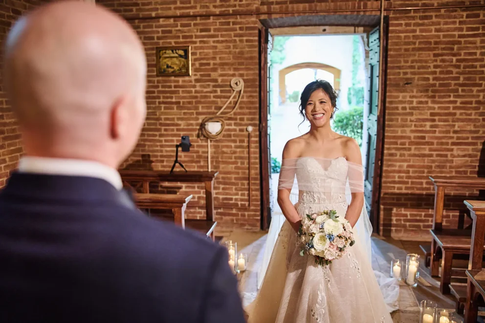 They chose Argiano Dimore, a boutique winery near Montalcino, for its impressive architecture and the quiet beauty of its historic private chapel. Their choice was intentional. It was a story about creating a moment of deep, personal meaning, away from the world, in a setting that felt completely their own.
