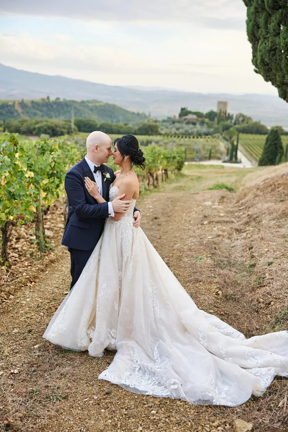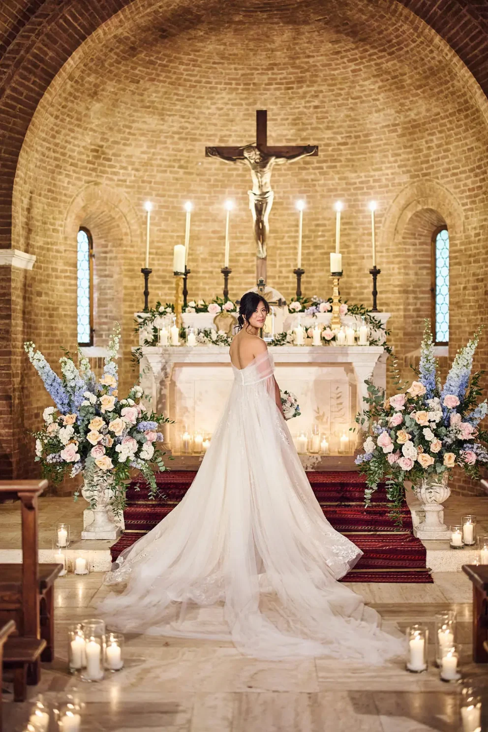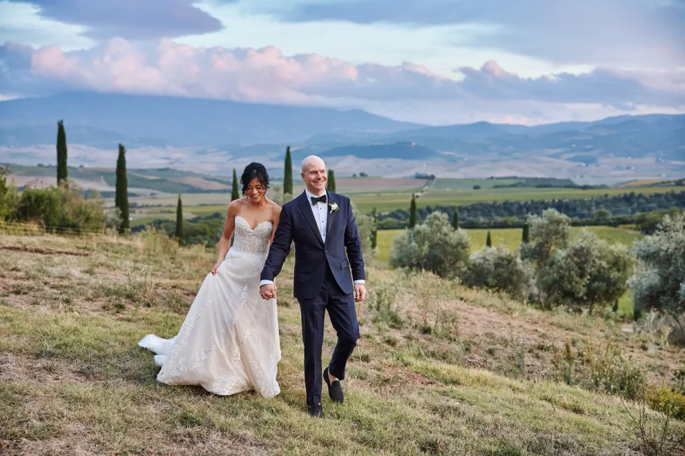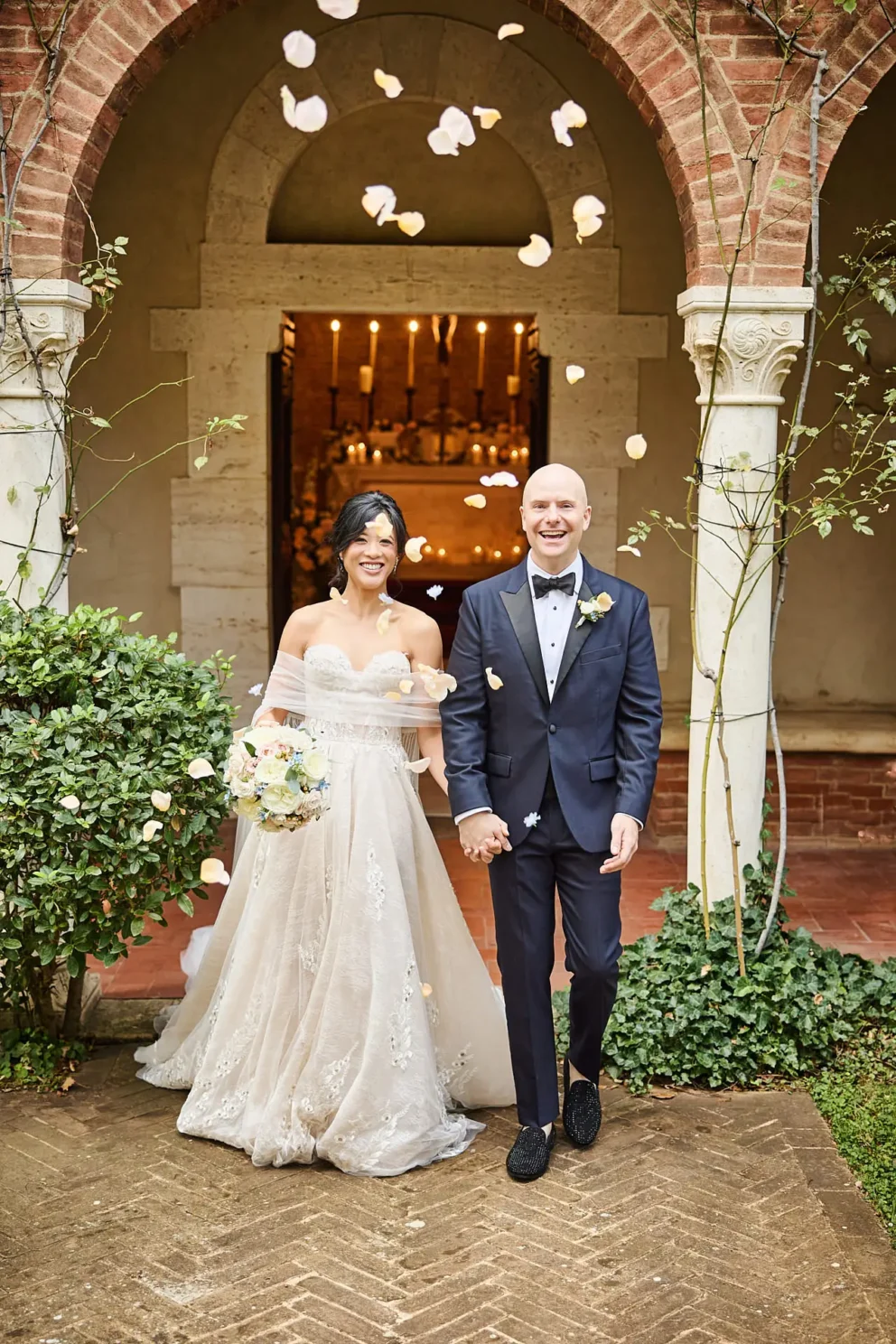 They chose Argiano Dimore, a boutique winery near Montalcino, for its impressive architecture and the quiet beauty of its historic private chapel. Their choice was intentional. It was a story about creating a moment of deep, personal meaning, away from the world, in a setting that felt completely their own.