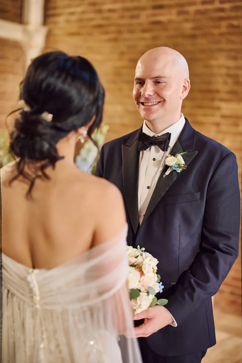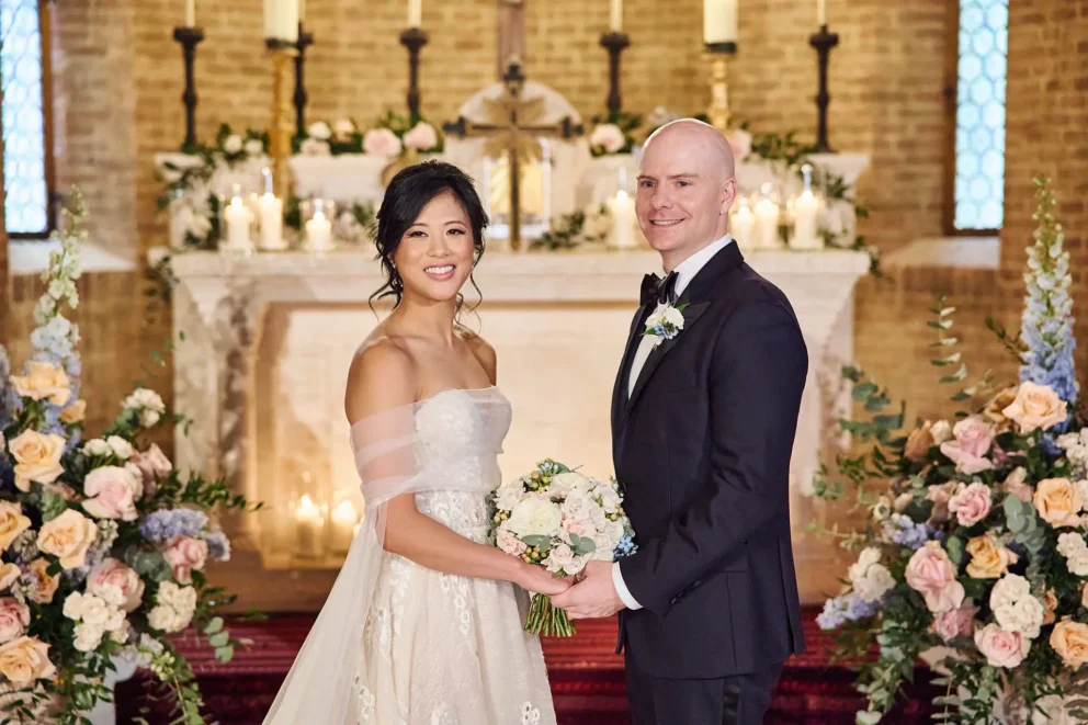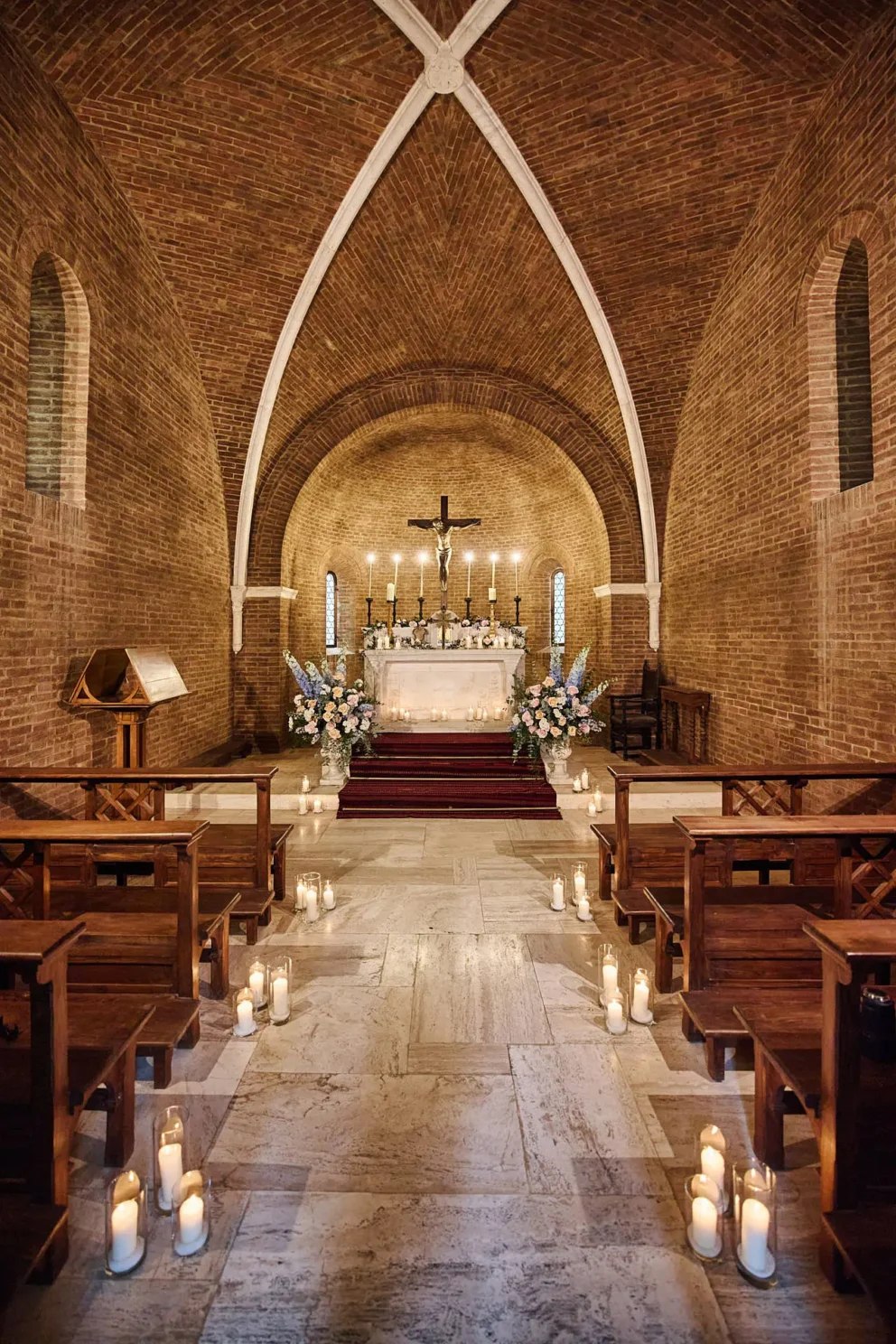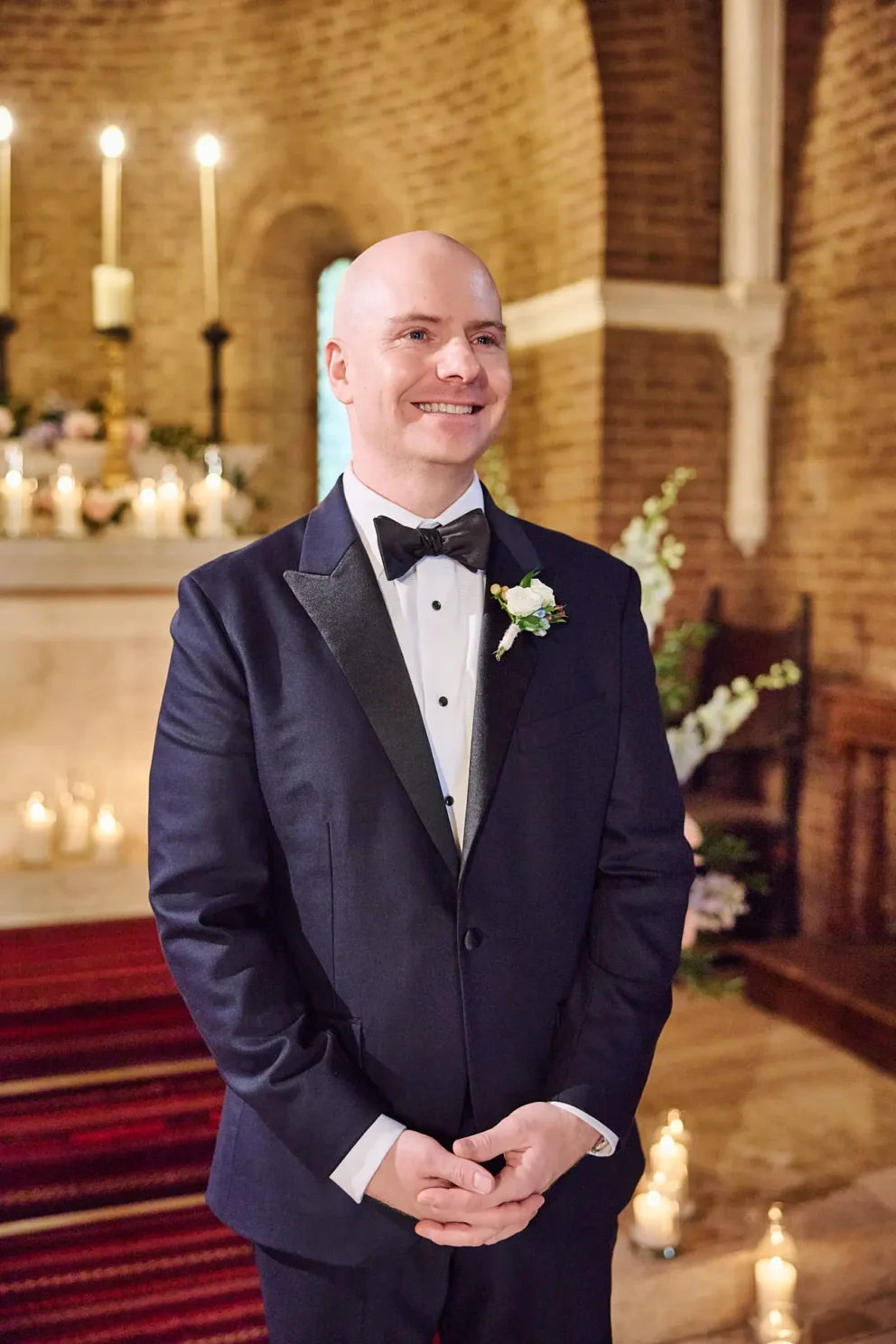 While many couples choose the gardens, Jacqueline and John were drawn to the feeling of the estate’s private chapel. Filled with candles and flowers, the space felt both grand and deeply intimate, a perfect reflection of their elegant, black-tie style.