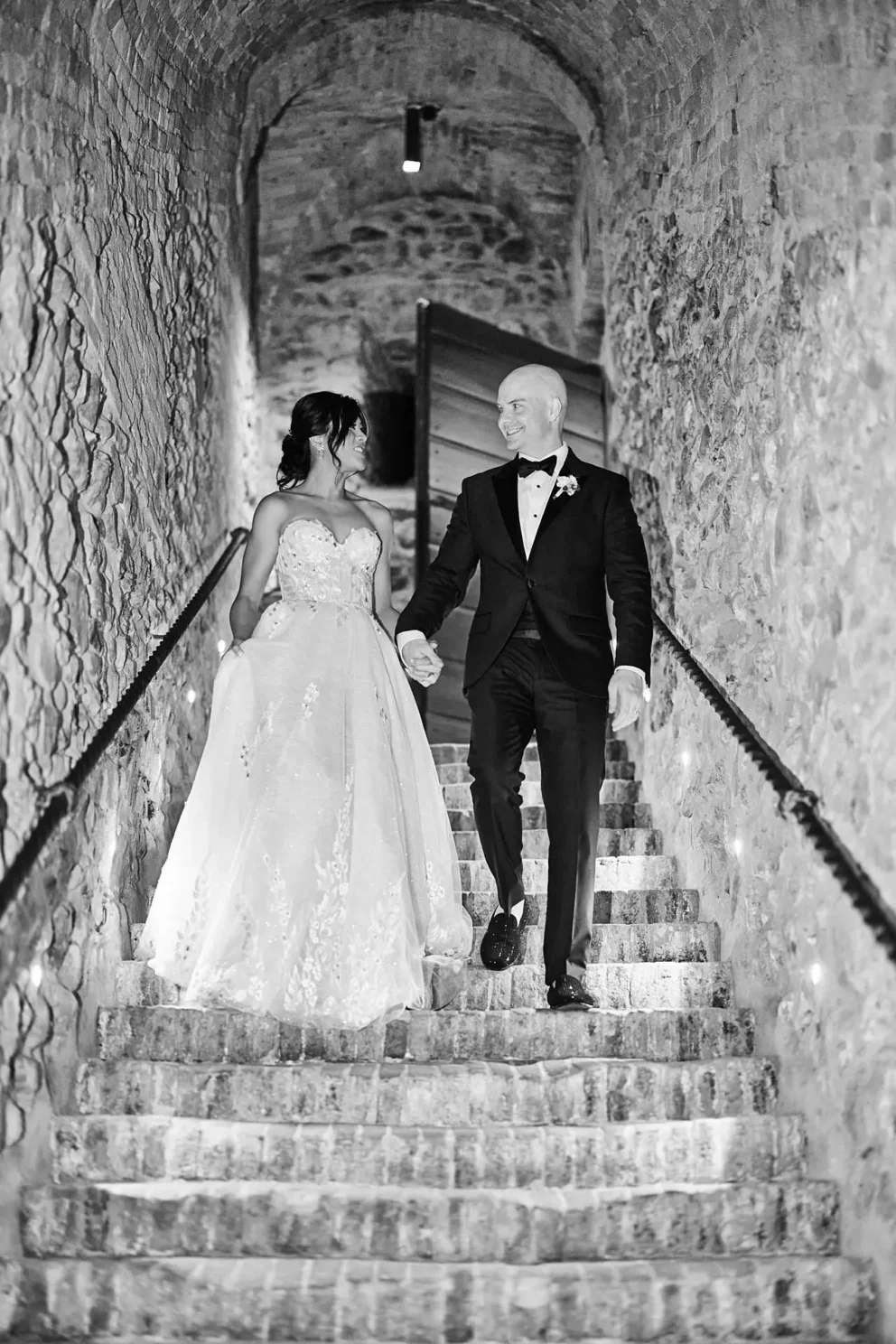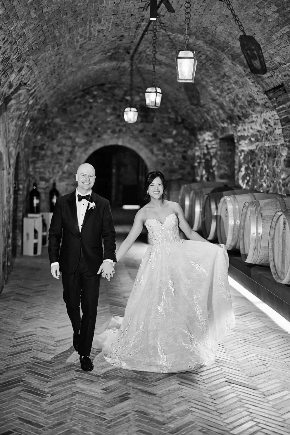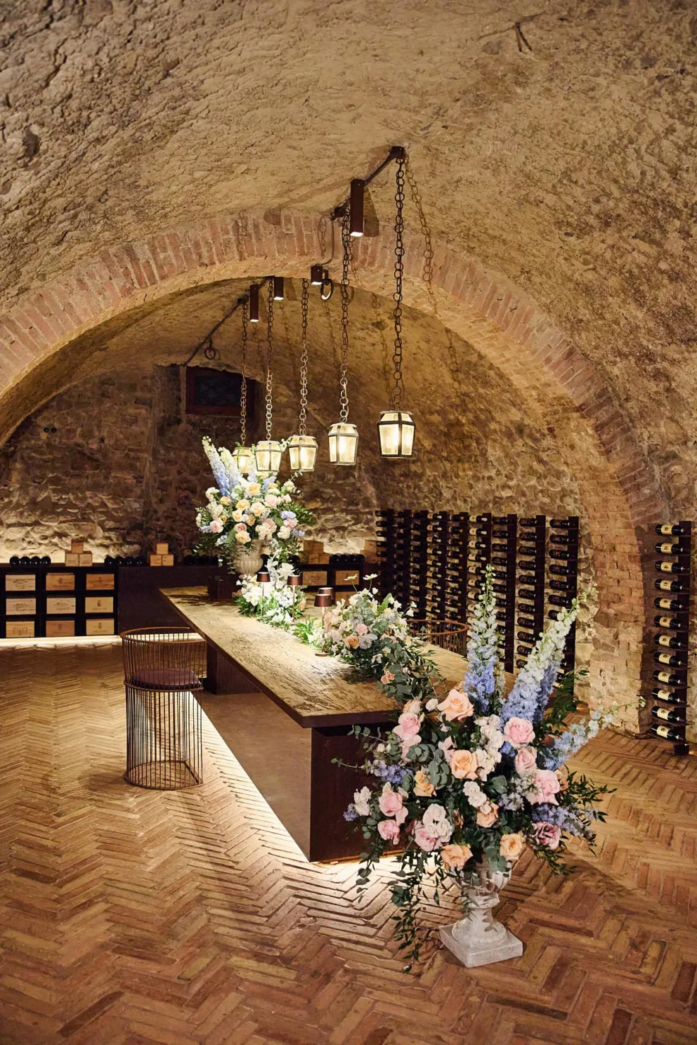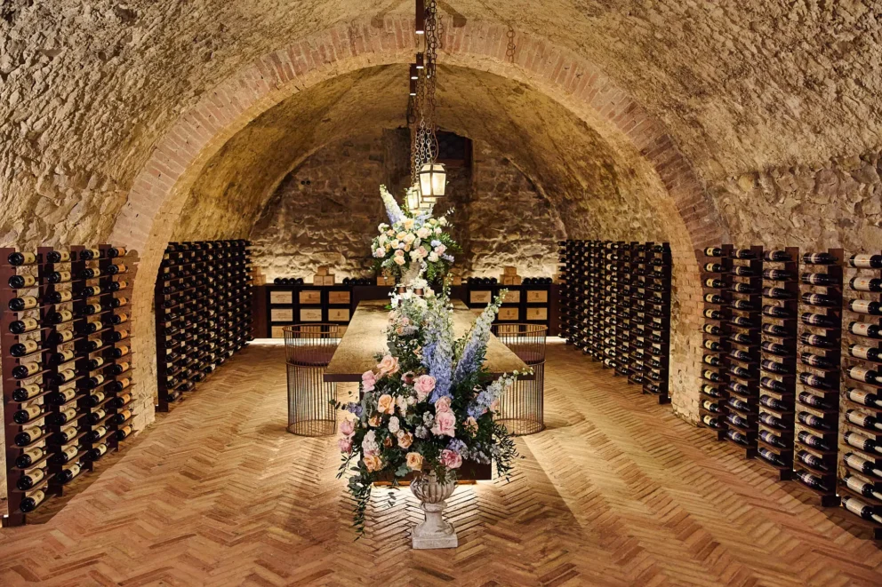 This feeling of quiet intimacy continued long after the ceremony. Their celebration ended with dinner for two in Argiano’s private wine cellar. Surrounded by history, with music playing just for them, they shared their first dance before sitting down to eat. It was a perfect, private end to a day that was entirely their own.