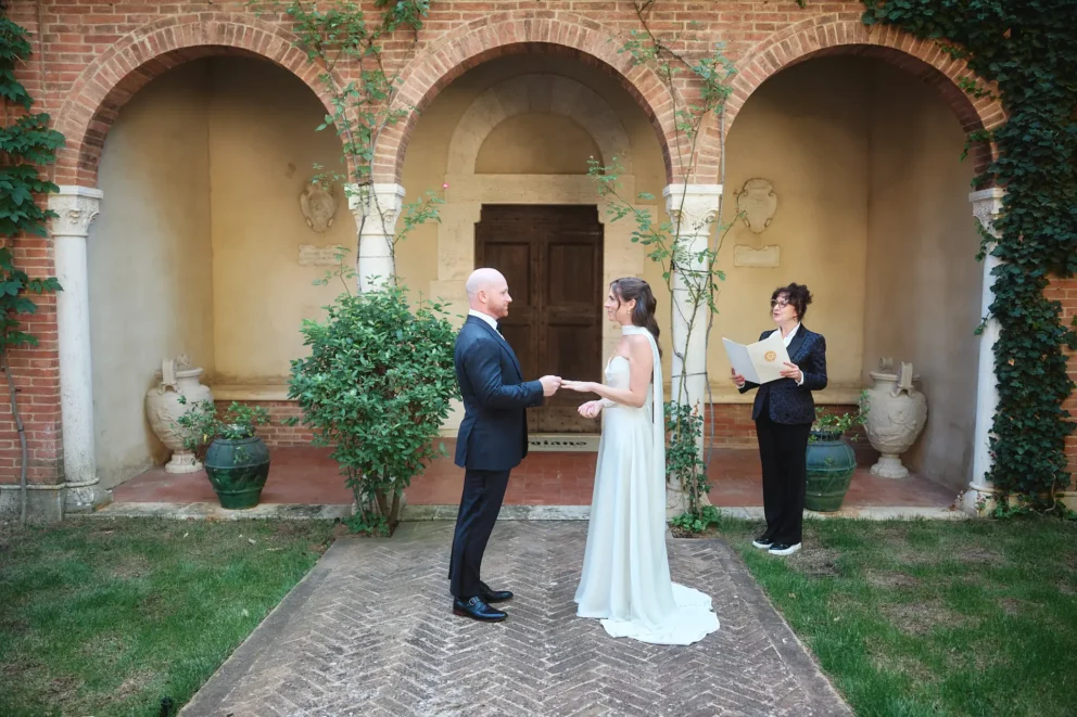 What does a celebration feel like? For Katelyn and Charlie, the answer was clear. It feels like the vibrant notes of a string trio playing contemporary music as you sip prosecco. It feels like the collective laughter of your closest friends and family. It feels like a beautifully set table under the stars in a Tuscan courtyard, ready for an evening of incredible food and company. Their vision was for a small wedding in Tuscany that was not a quiet affair, but a truly joyful and engaging party for their sixteen guests.