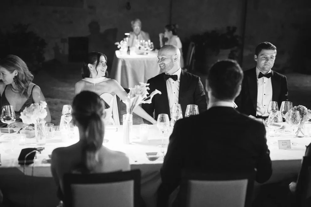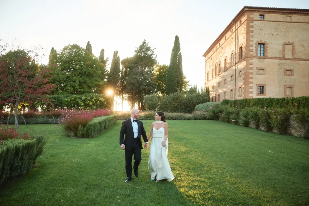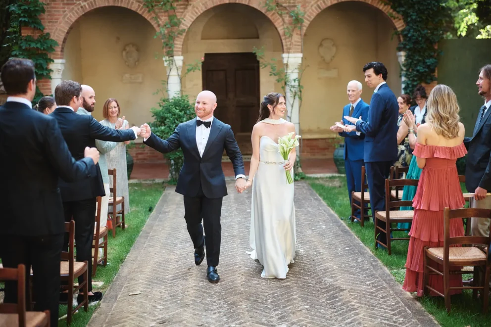 They chose Argiano Dimore, a historic Brunello estate, as the backdrop. The day was a masterclass in blending deep personal meaning with shared fun. It began with an emotional first look where they privately exchanged handwritten vows, creating an intimate anchor for the day. But from the moment the ceremony concluded with a symbolic wine blending, the day became a pure celebration.