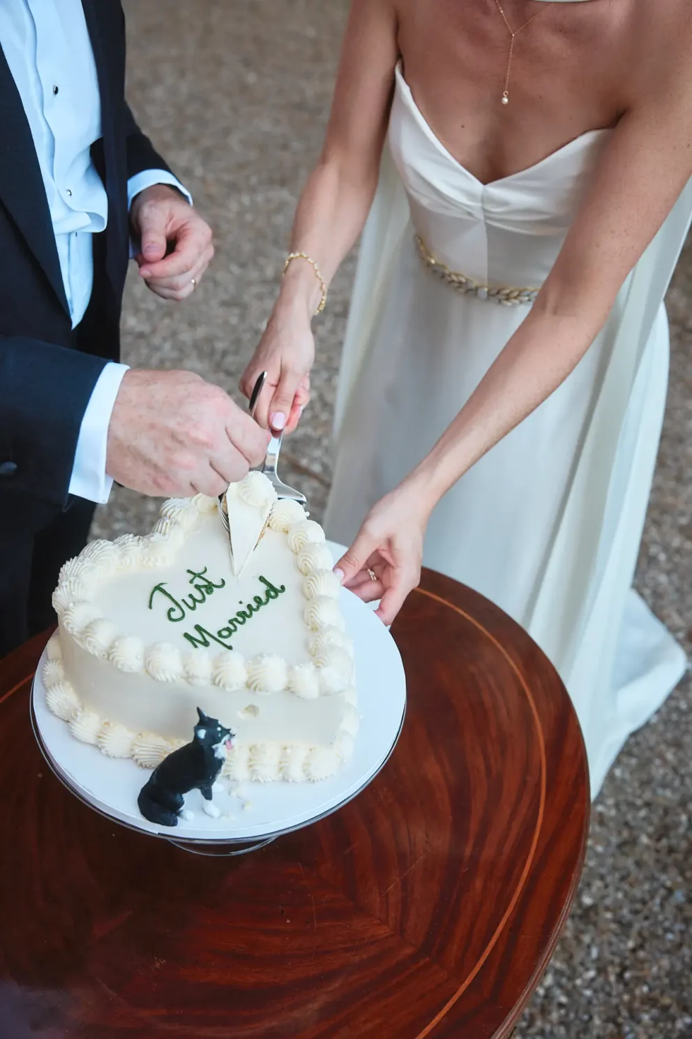 The real art of curating a wedding is in the details that tell a couple’s story. Our favorite moment was the cake cutting. An antique table was brought out, holding a simple, elegant cake. On top sat a custom-made cake topper: a perfect, tiny replica of their beloved dog who couldn’t make the trip from the United States.