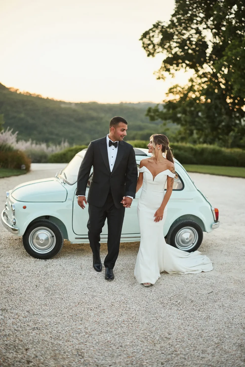 Then, the adventure truly began. A classic Fiat 500 was waiting for them, and their joy was infectious. This wasn’t just a prop; it was a reflection of their fun-loving personalities, a way to make their story feel completely theirs.