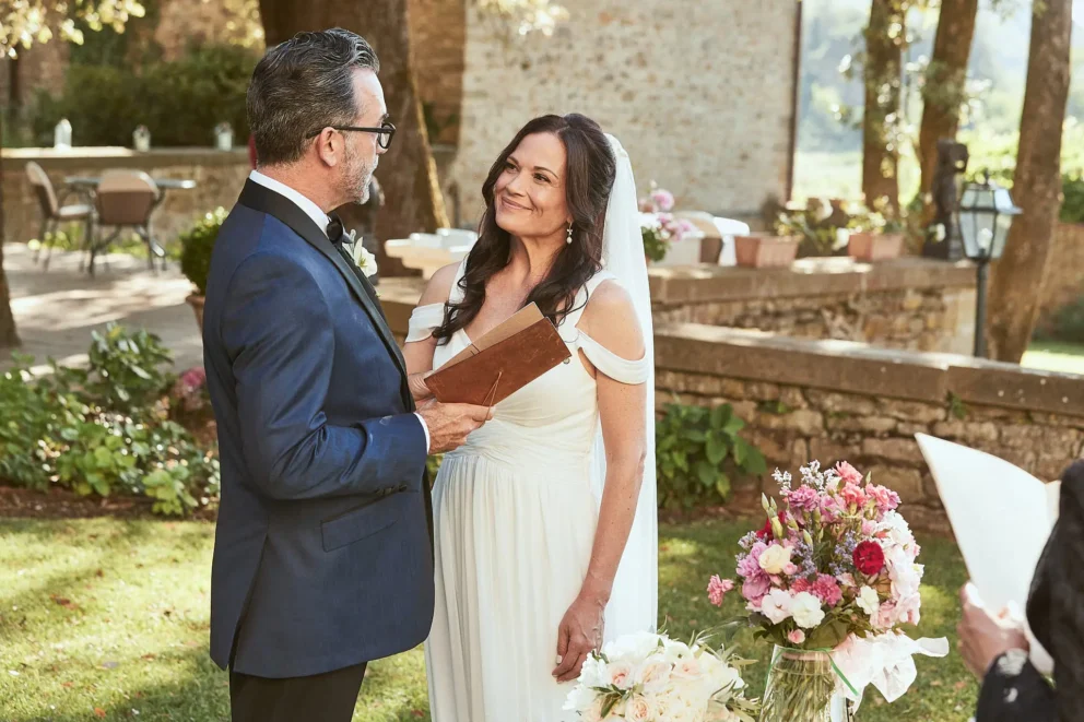Standing in the garden, surrounded by the faint scent of roses and the warm Tuscan sun, they exchanged vows that were theirs and theirs alone. There were no distractions. Just two people making promises. It was powerful. It was real.