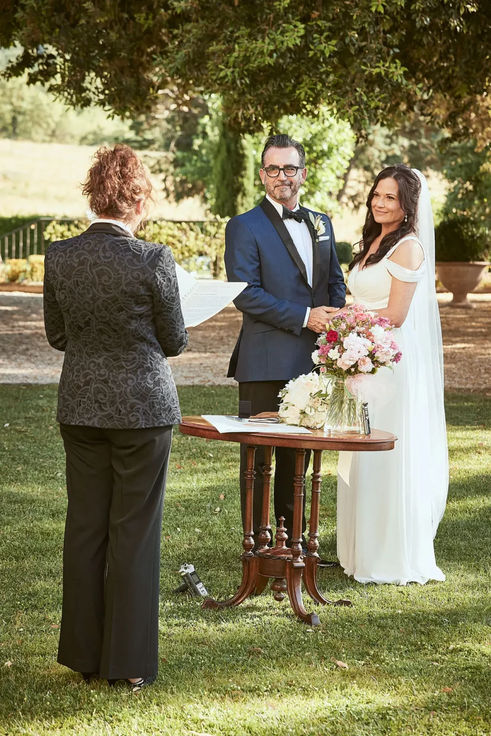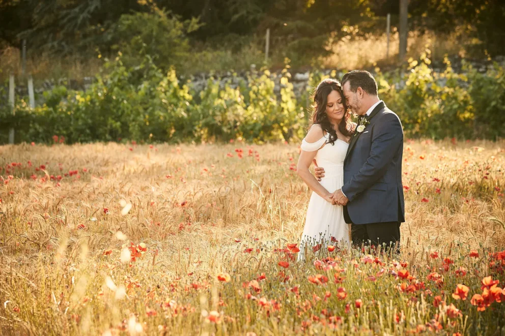 A wedding day isn’t a performance. It’s a promise. For Erin and Chris, who came all the way from California, that promise deserved a space of quiet intention. A place where their own words could be the main event. We found that for them in a secluded garden at Villa di Piazzano, a corner of Tuscany that felt like it was reserved just for them. Their story wasn’t about spectacle. It was about connection.