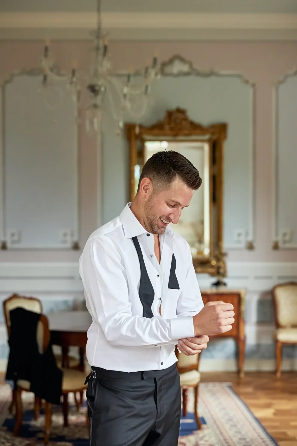 The choice was as practical as it was romantic. Located conveniently on the train line between Rome and Florence, it made the logistics of their travel feel enjoyably simple. But the decision was sealed by the villa’s character. They had the impressive common spaces to get ready separately, building anticipation for the ceremony.