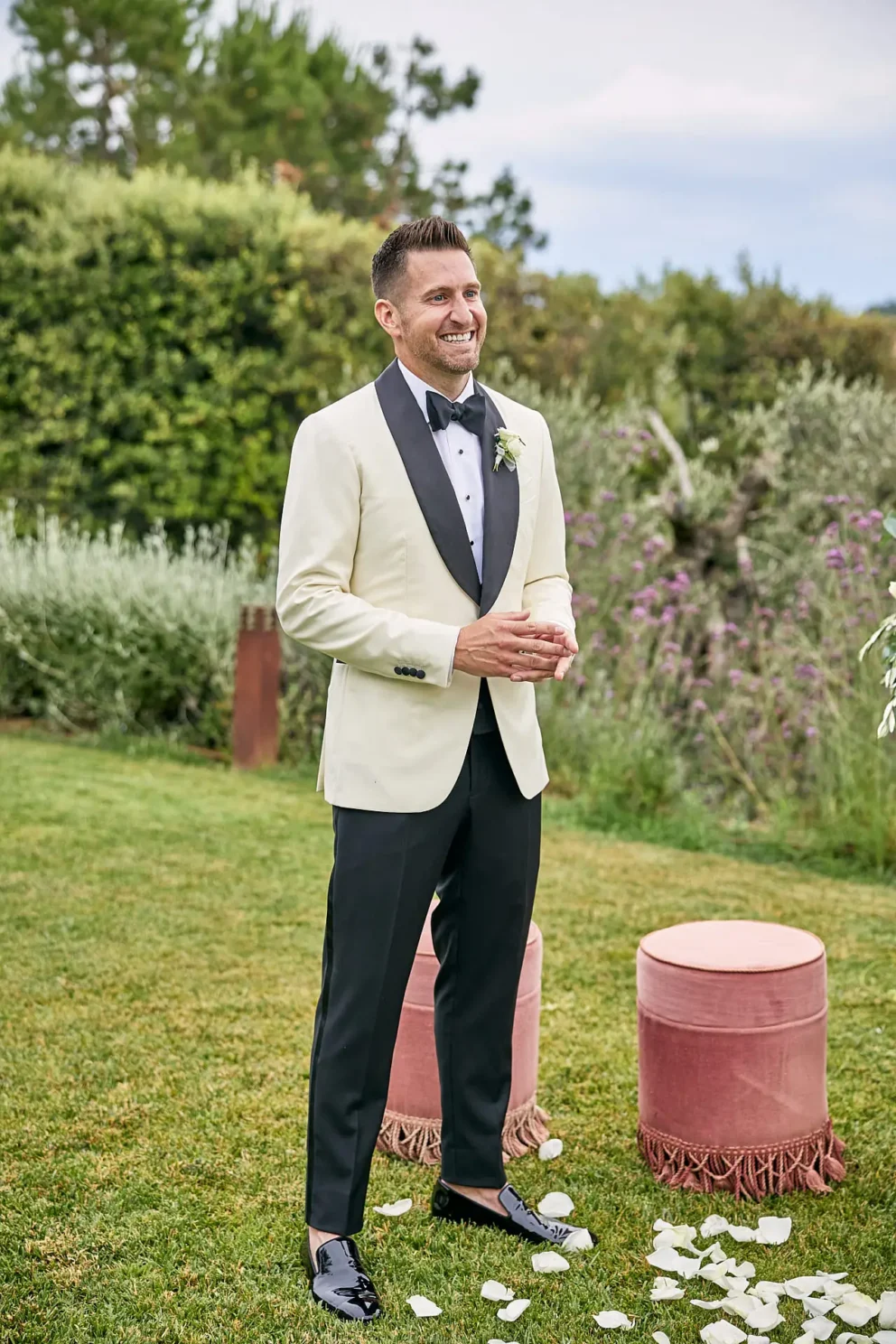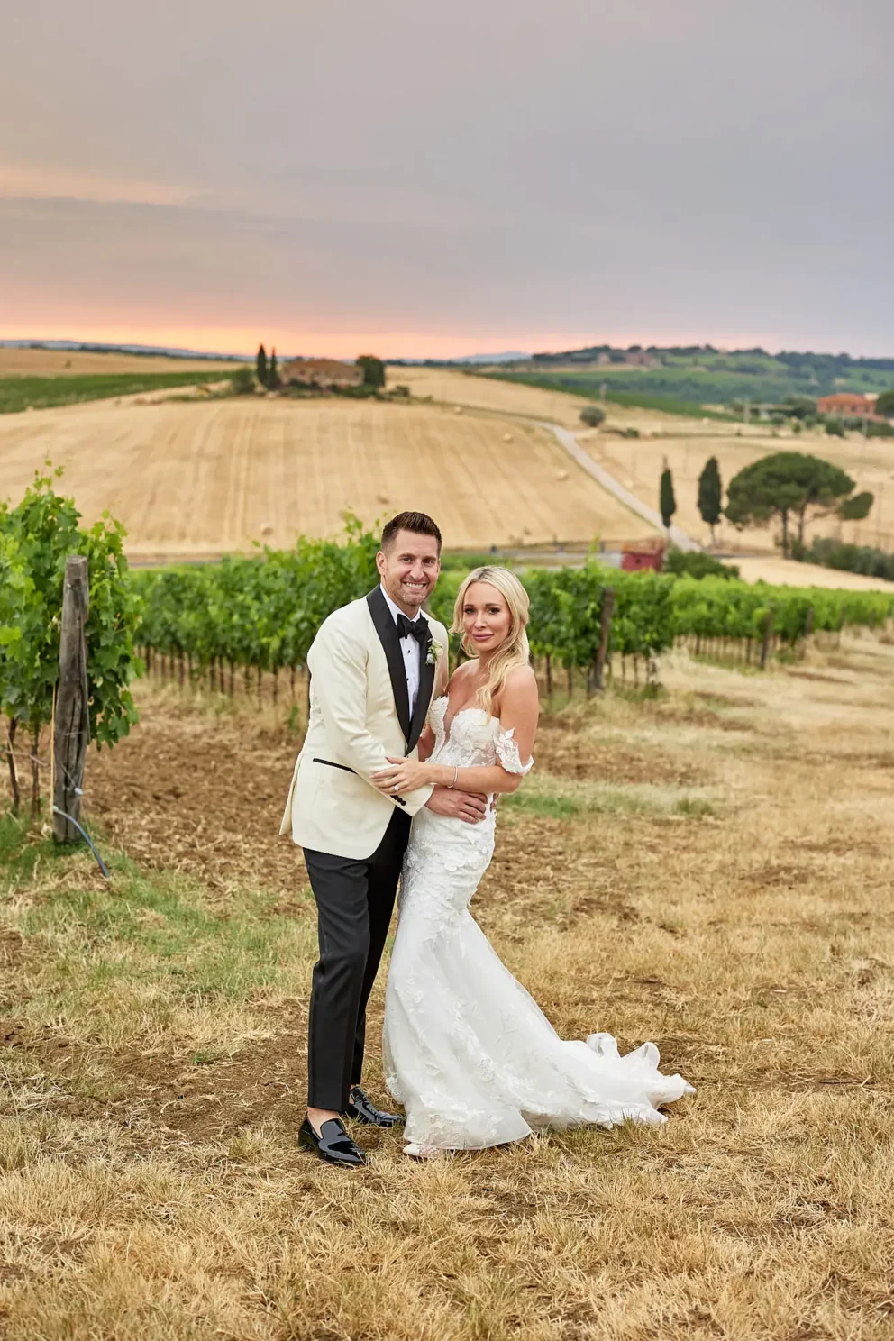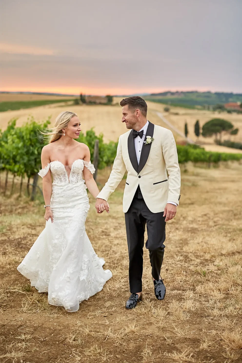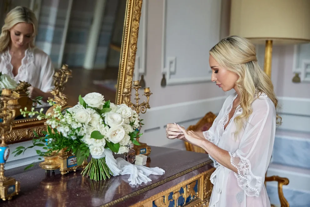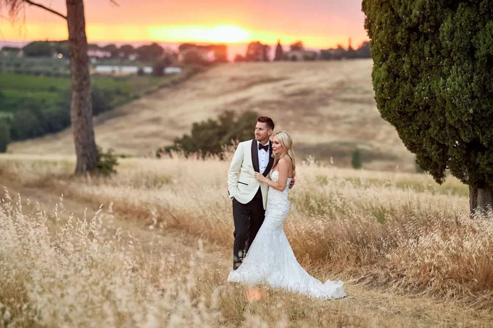 Then, on a private lawn with the rolling hills as their only witness, they saw each other for the first time and exchanged vows from a text written just for them. It was a perfect moment, followed by portraits around the estate and a private dinner prepared by a personal chef. For one day, this historic villa was not a venue. It was their home.