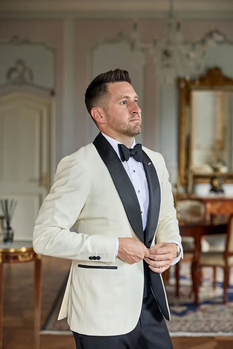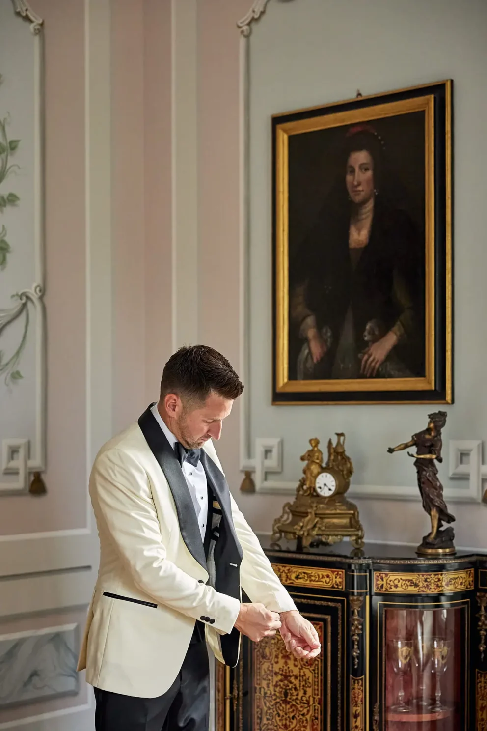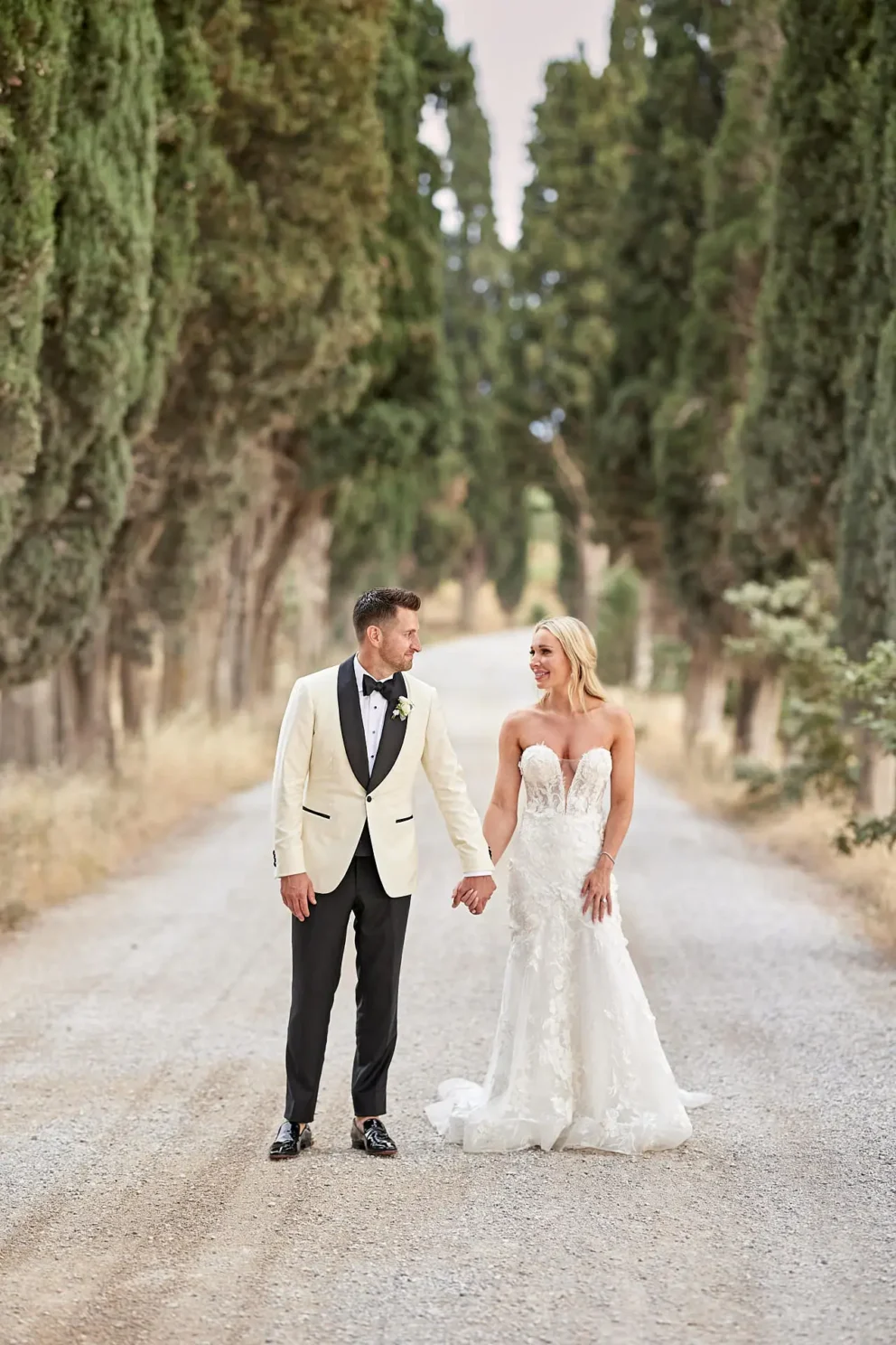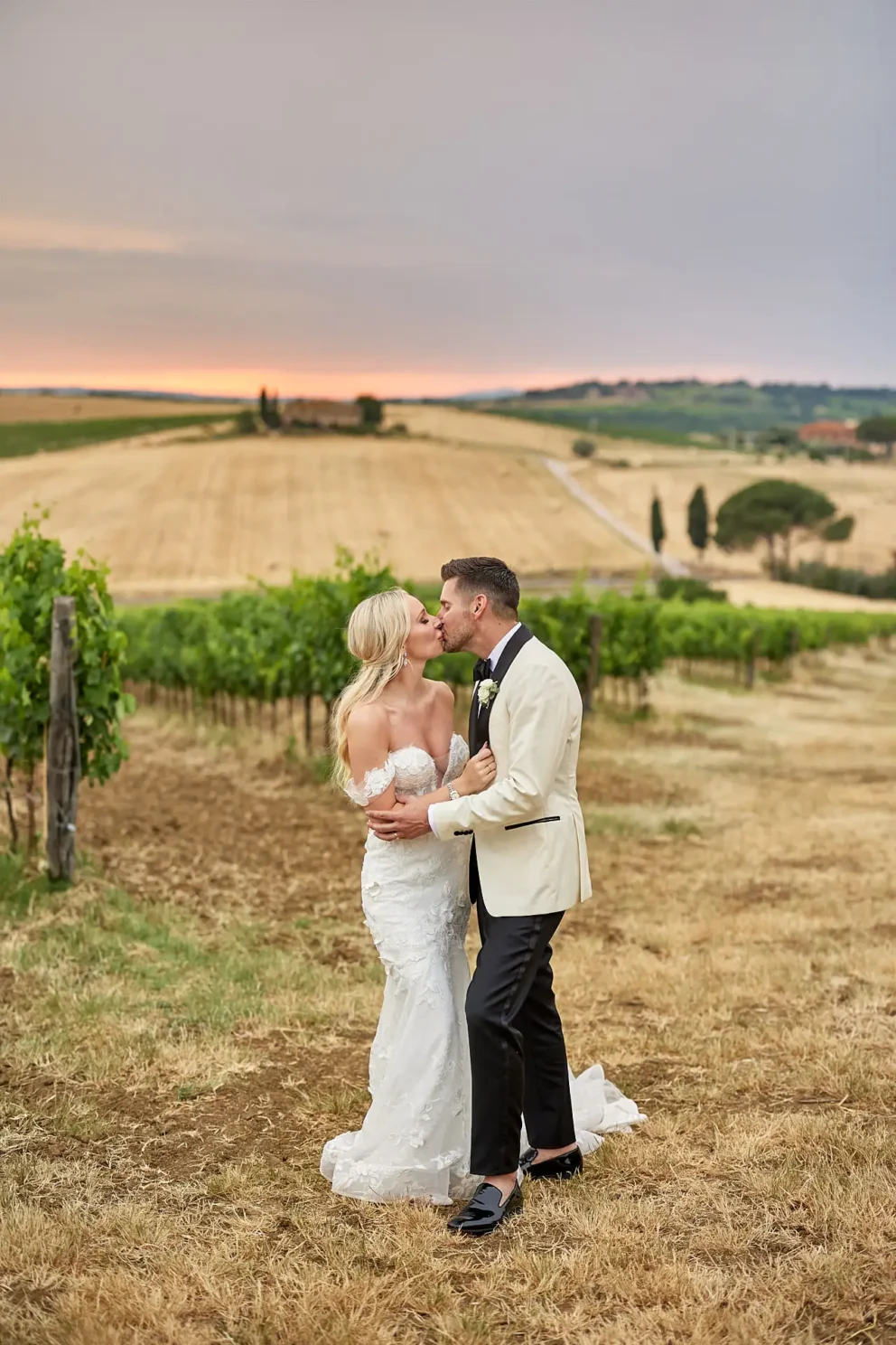 Then, on a private lawn with the rolling hills as their only witness, they saw each other for the first time and exchanged vows from a text written just for them. It was a perfect moment, followed by portraits around the estate and a private dinner prepared by a personal chef. For one day, this historic villa was not a venue. It was their home.