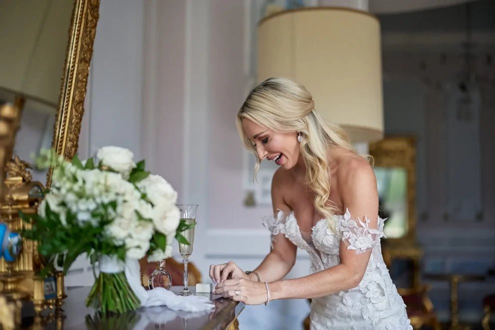Seeing them stand together on the lawn for the ceremony was the moment their entire vision came to life. The contrast was beautiful. The wild, rolling landscape stretched out behind them, while they stood in the manicured elegance of the villa’s parkland. It was a powerful scene that was both grand in scale and deeply personal in feeling, a perfect reflection of their quiet and sophisticated love story.